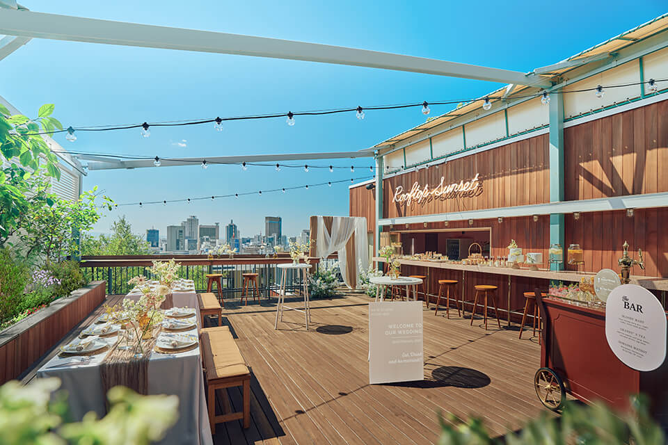 シンプルで使いやすくコーディネートも自在のバンケットに、開放感あふれるBarカウンター付のルーフトップテラス、洗練されたラウンジなど多彩なスペースを組み合わせる全館貸切など、ご希望のイベント・パーティーをプランナーがプロデュースします。