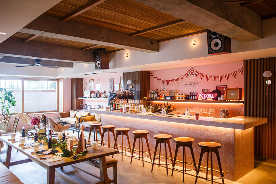 会議やアフターパーティ、ウェイティングなど ゆったり利用できる洗練空間。 最大収容人数:着席50名様 / 立食80名様 面積:100m² 天井高:2.7m MORE >