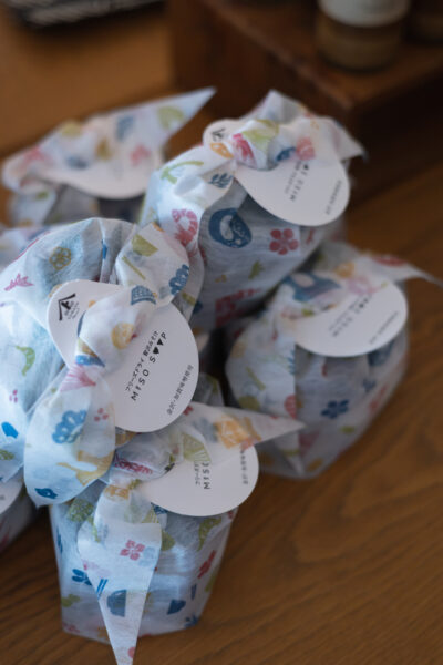 ビニールやナイロン製のラッピングが多い中、巾着袋を使うだけでぐっとおしゃれ度アップ✨