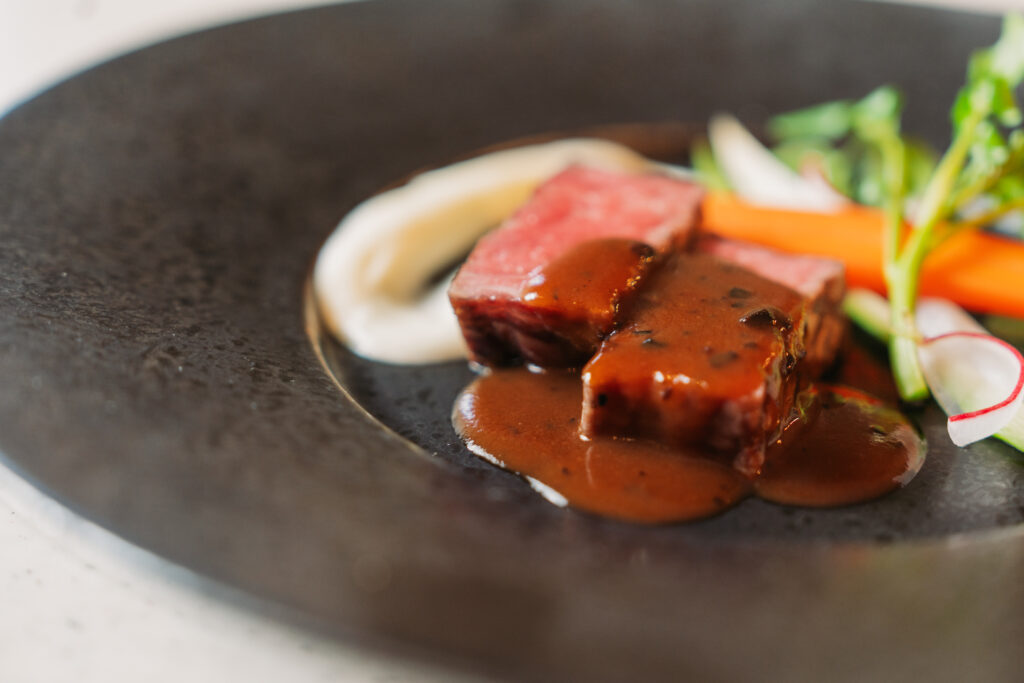 くちどけの良い黒毛和牛は、噛むたびに旨みが口いっぱいに広がります。