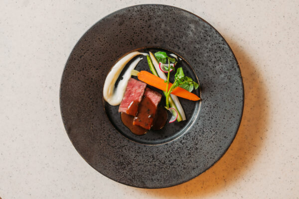 ラストはこちら。黒毛和牛のグリルに、新鮮な季節野菜とトリュフソースを添えて。