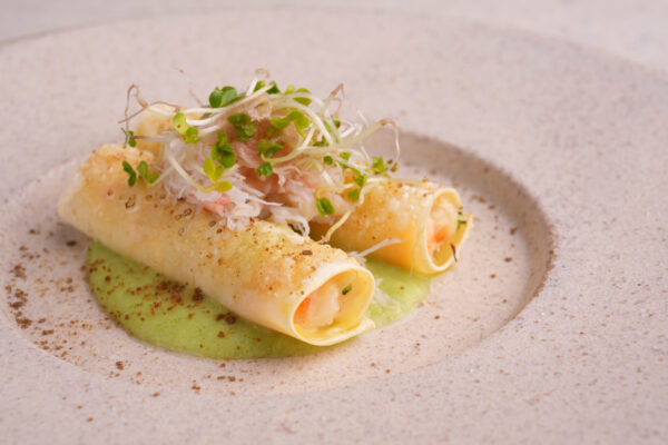 続いてはこちら。ブロッコリーと贅沢に蟹を使用したカネロニ。