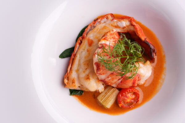 お次は迫力満点!オマールエビをまるごと一匹使用した、贅沢なスープ仕立て。