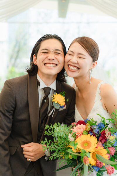 眩しい笑顔の新郎新婦にさらに輝きを添えるブーケとなりました💐✨