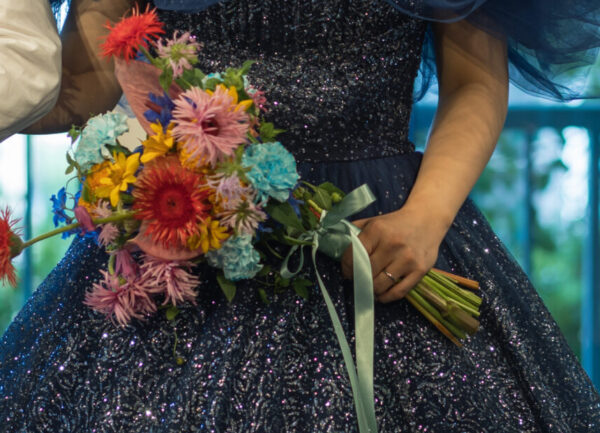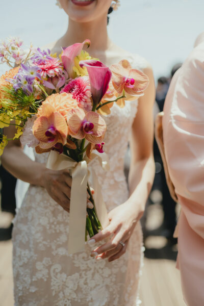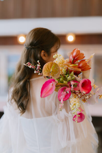 ビビットカラーは純白のウェディングドレスとも相性抜群。