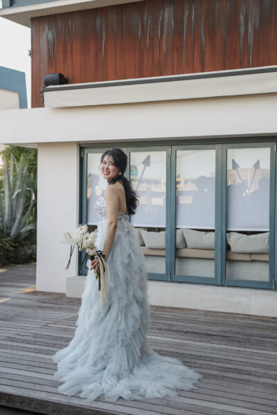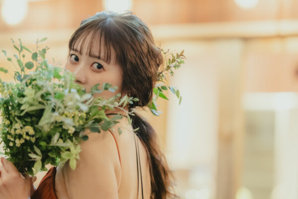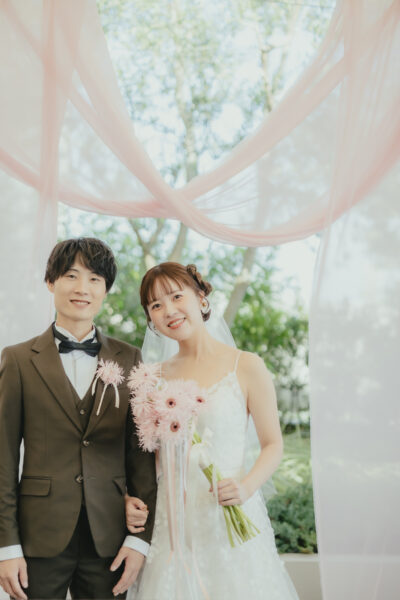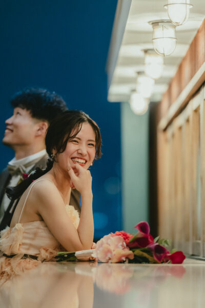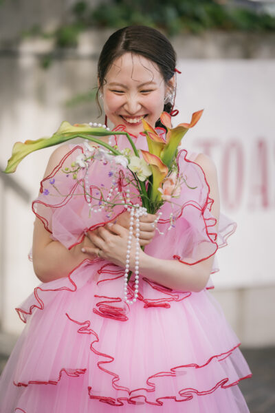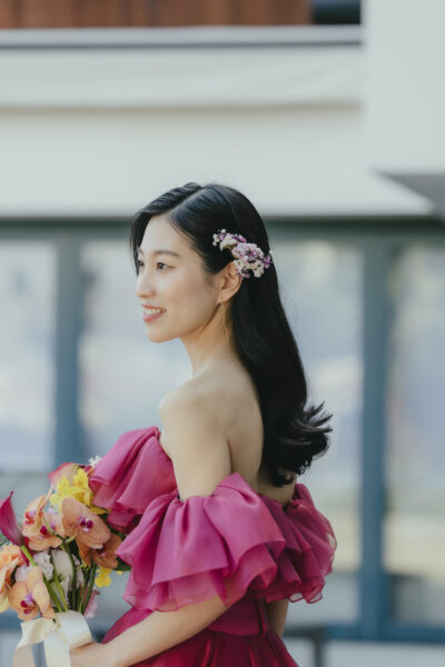 明るさはそのままに、良い意味でポップすぎず、ドレスに馴染むやわらかな印象に仕上がります。