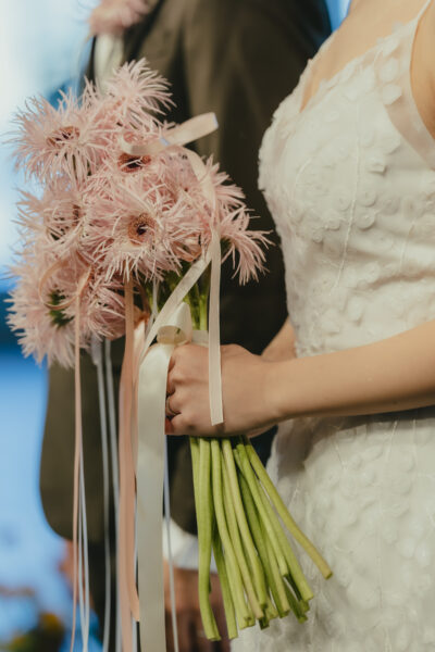 ◇ガーベラを使った儚くフェミニンな一束