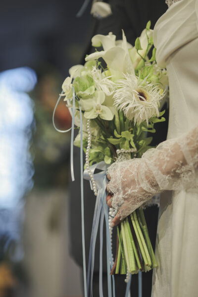 花嫁の美しさをそっと引き立てる、ウェディングブーケ。