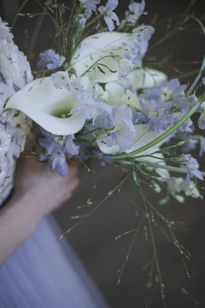 淡いブルーとホワイトをメインにした、透明感あふれるブーケ💐