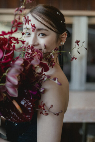 深みのあるボルドーが美しい、大人っぽくシックなブーケ。