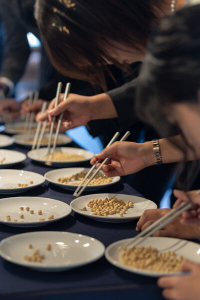 こちらのお写真は、実際に行われた”豆掴み対決🥢”の様子。