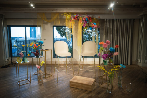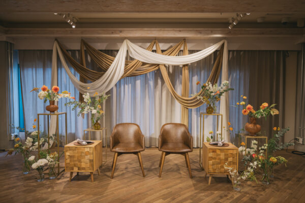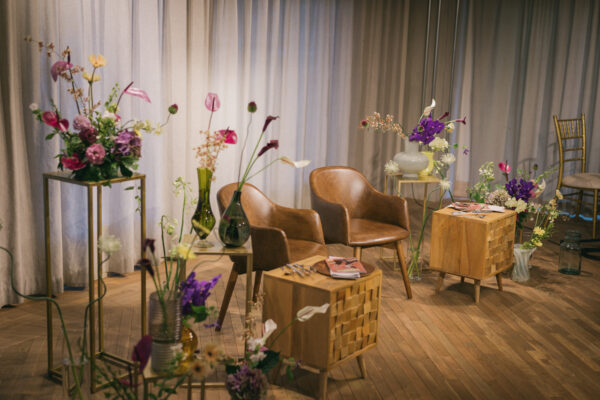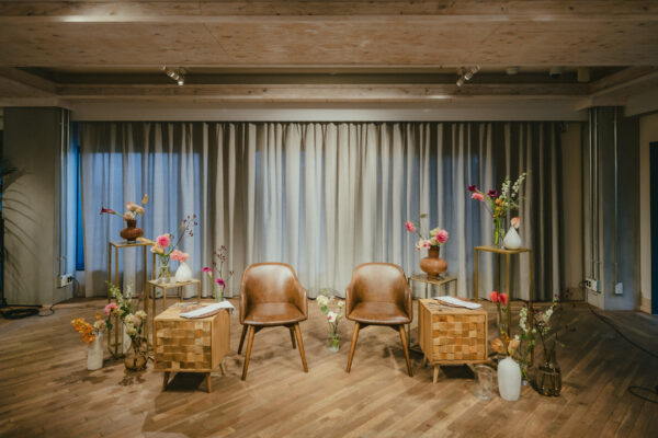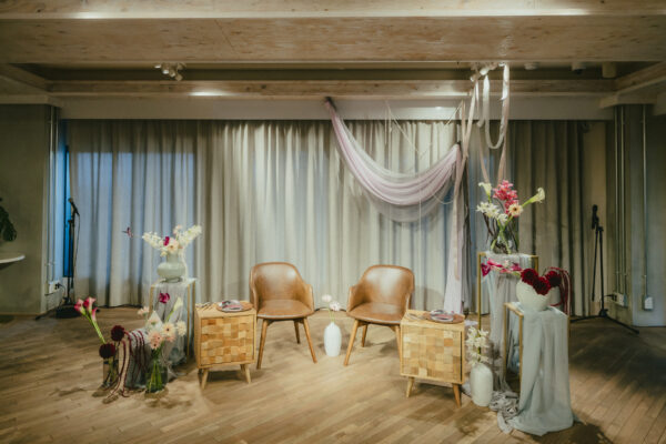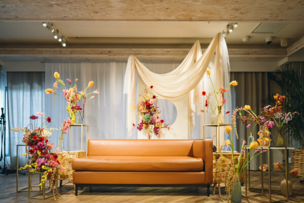 お花の色合いやボリューム、小物の組み合わせによって会場の雰囲気はぐっと変わります。