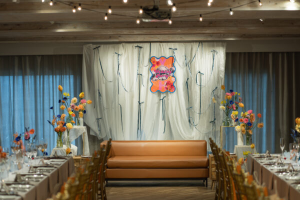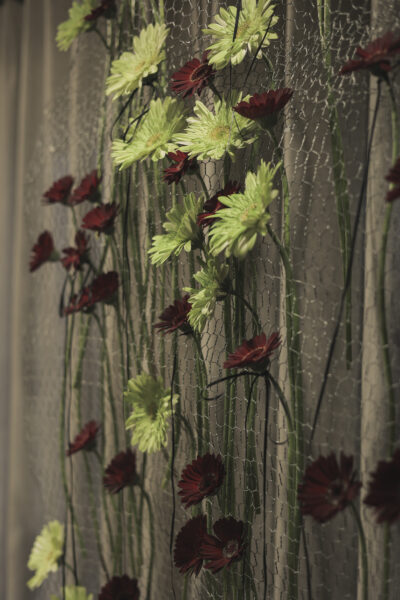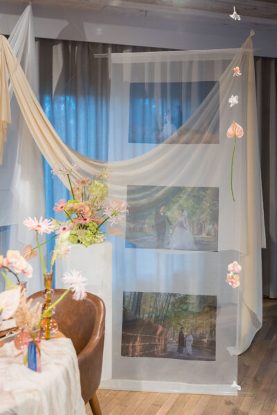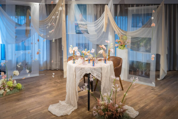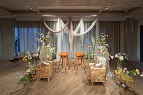 やわらかく華やかなフラワーカーテンが、ふんわりと会場を彩ります。